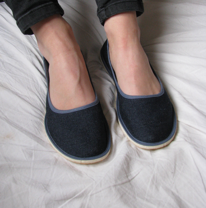 Die sehr komfortablen Ballerinaschuhe sind perfekt für trockene Schönwetter-Spaziergänge, für's rumspringen im Büro oder Schulkorridore und natürlich zu hause. Sie sind aus einem kräftigen Stoff genäht. Die Sohle ist aussen aus Gummi und innen Wollfilz.