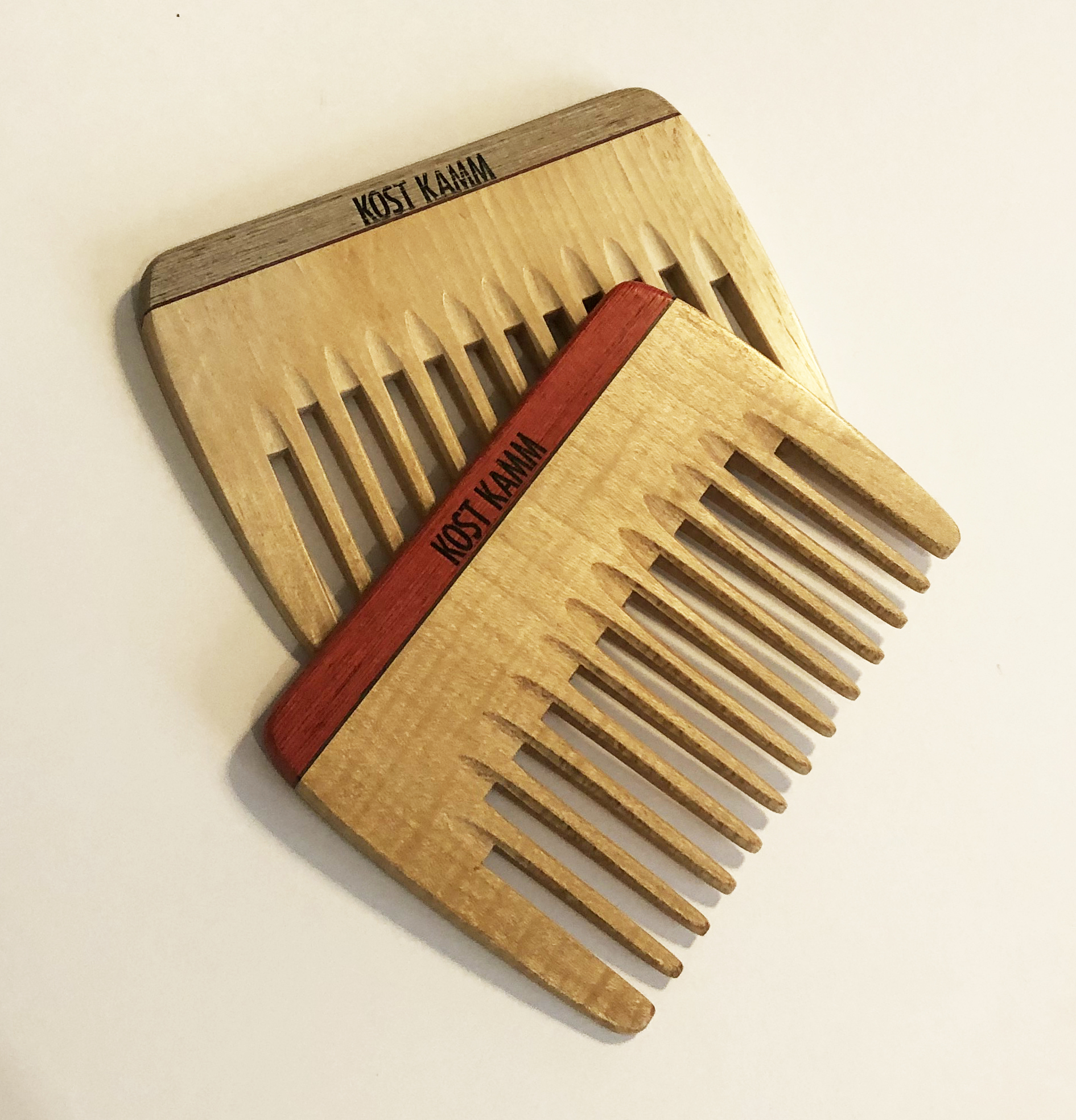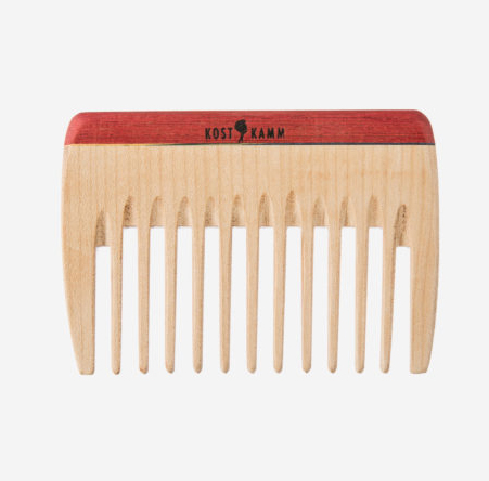 Ein Holzkamm für mittellanges bis langes, gewelltes oder lockiges Haar, mit einer Länge von 10cm besonders geeignet für Reisen und unterwegs. Von Hand hergestellt von Martin Kost, in Windelsbach bei Rothenburg ob der Tauber.