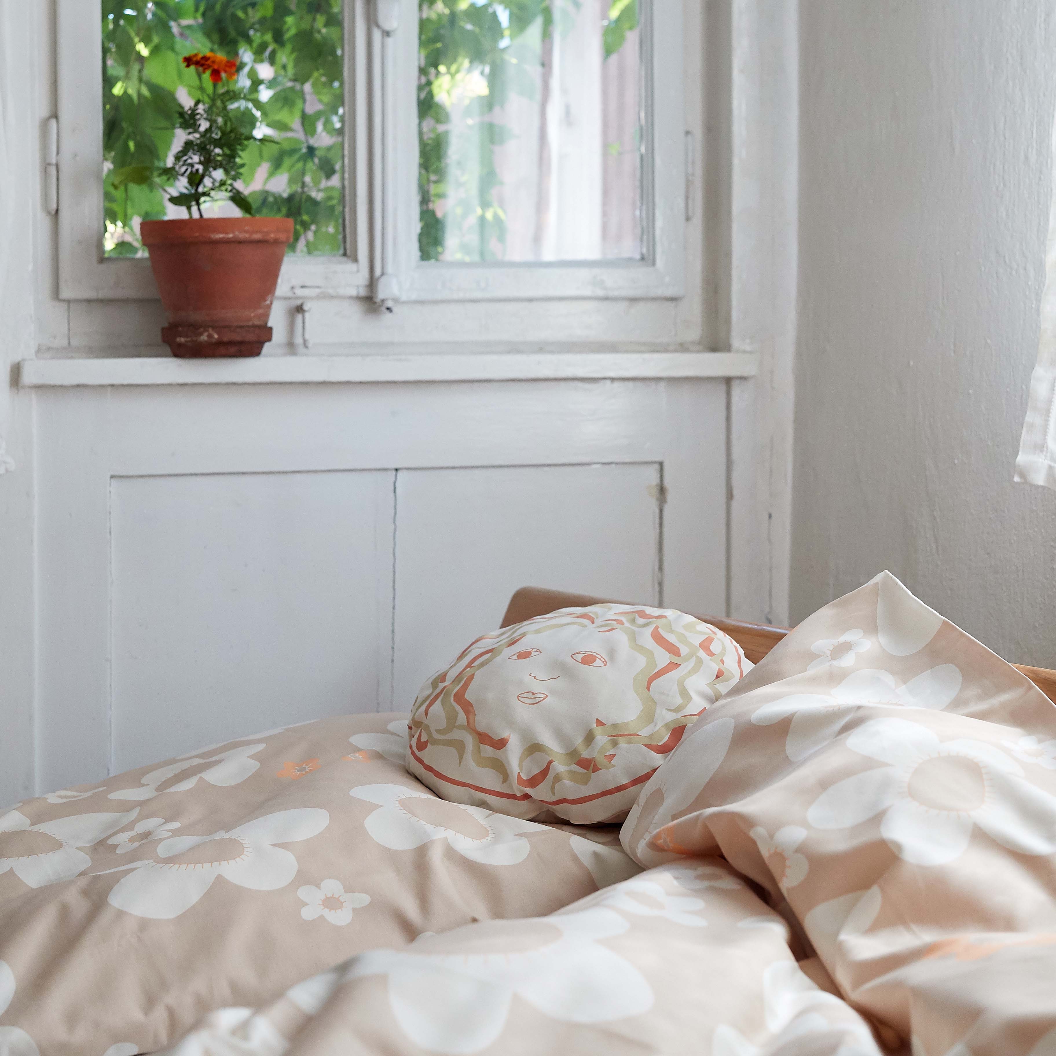 Hochwertige Bettwäsche in bester ökologischer Qualität mit klassisch skandinavischem Design kombiniert.Die glatten, leicht glänzenden Stoffe, die keinerlei zusätzliche chemische Behandlung erfahren, fühlen sich angenehm natürlich an. Hochwertige Satin-Web-Bindung macht den Stoff strapazierfähig und lässt ihn schön fallen. Um allergische Belastung des Benutzers zu minimieren, werden die ungebleichten Stoffe in Deutschland (nach gültigen Ökotex-Standards) mit ungiftigen Farben bedruckt und verarbeitet. Die Baumwolle hat Öko-Zertifikat ( faire Arbeitsverhältnisse, 100% Öko).Ausgestattet ist die Bettwäsche mit praktischem Reißverschluss.