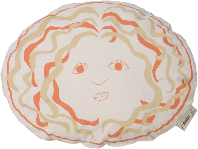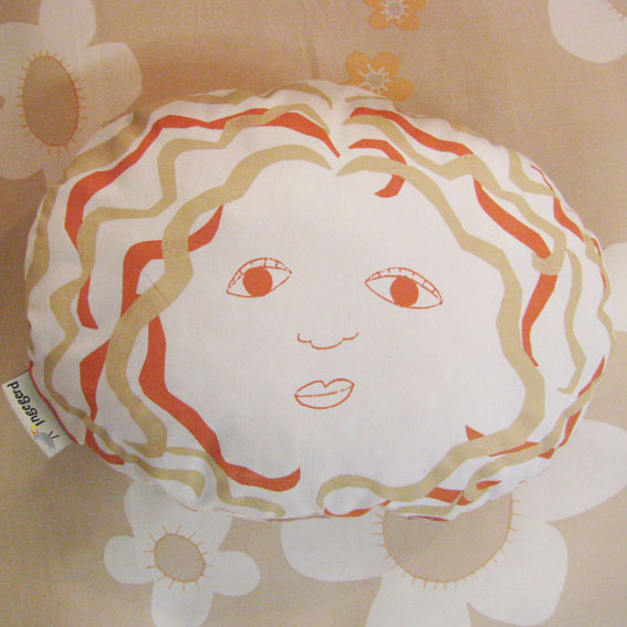 Zierkissen, handgedruckt und mit Öko-Wollnoppen gefüllt. Weich und kuschelig.