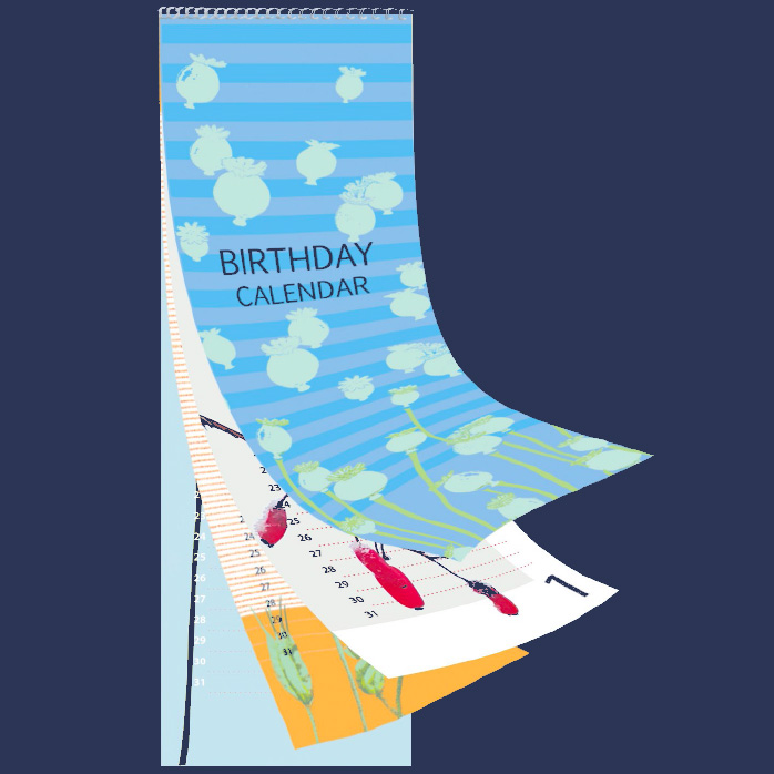 Die Berliner Designerin Verena Schätzlein huldigt mit diesem immerwährenden Kalender ihren Balkonpflanzen. Jeden Kalendermonat hat sie die jeweils schönste Pflanze ausgesucht und grafisch umgesetzt. Der ewige Kalender kann jedes Jahr neu verwendet werden um sich an Geburtstage und andere wiederkehrende Ereignisse erinnern zu lassen.