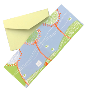 Die Berliner Textildesignerin Verena Schätzlein hat in einem fairen Arbeitsprojekt in Indien diese schöne Karte entwickelt.
