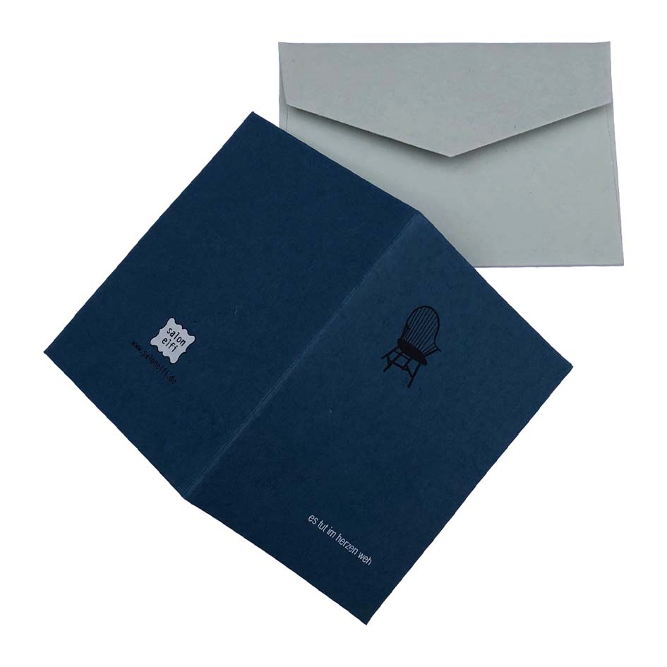 Die Berliner Textildesignerin Verena Schätzlein hat in einem fairen Arbeitsprojekt in Indien diese schöne Karte entwickelt. Die Doppelkarte ist gefaltet 10,5x15cm groß, der Umschlag etwas größer. Das Papier wird aus Resten von der Baumwollindustrie von Hand hergestellt und hat einen sehr edlen Touch. Die schöne und eigenwillige Motive werden von der Designerin selber in ihrer Berliner Werkstatt von Hand gedruckt.